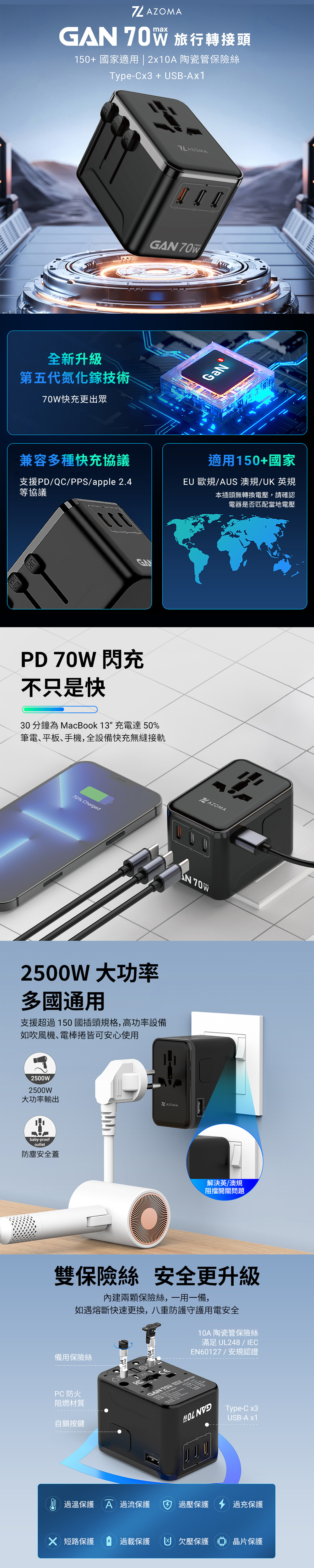 6.8項安全防護,過流、過壓、短路、過熱、低電壓、智慧分流、過載、過充保護