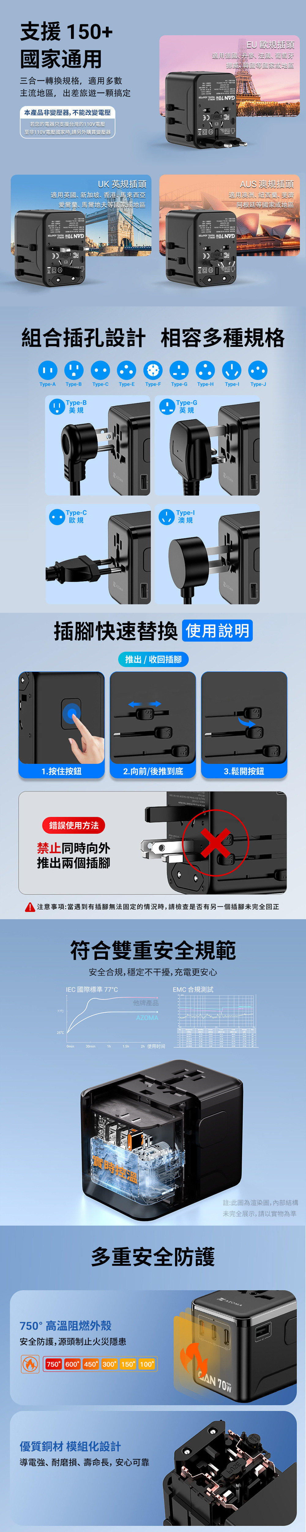 轉換頭僅支援插座變換,''不支援變壓功能'',請確保使用設備與使用插座電壓相符。