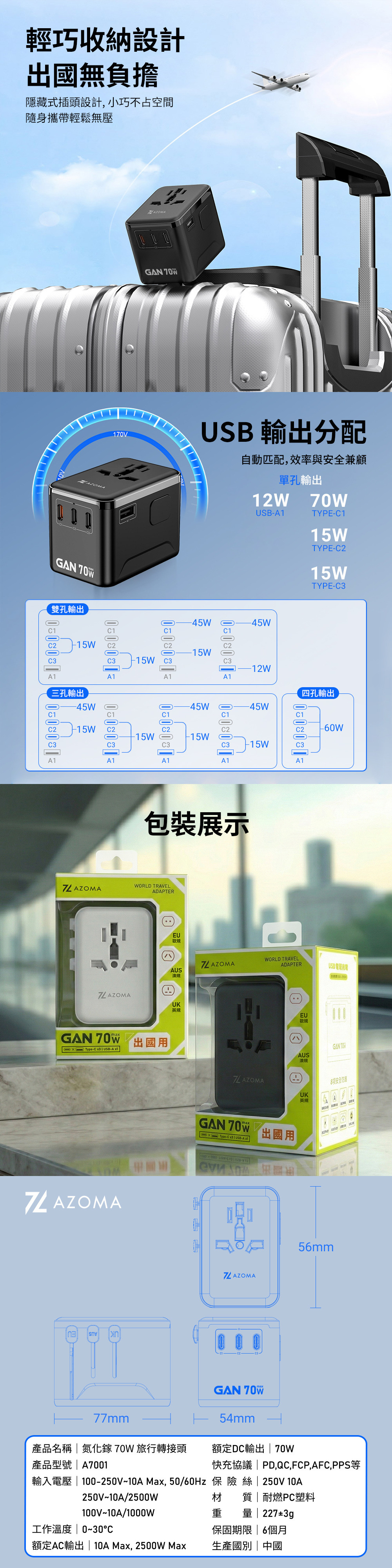 4.搭載USB-A x1、Type-C x3,可同時幫多台手機,相機,WiFi機....等多台3C設備充電