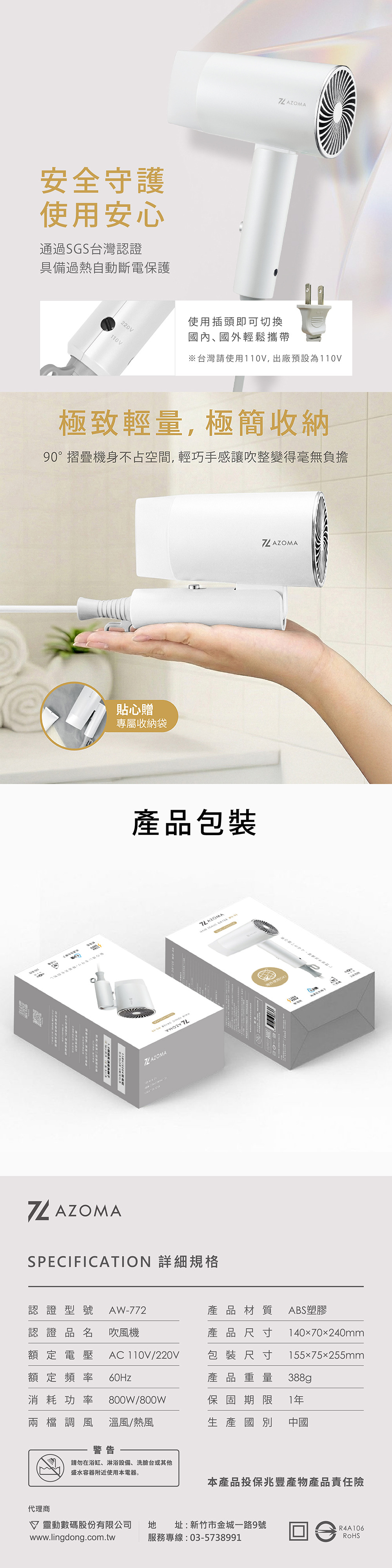 產品名稱:WD-03 雙電壓摺疊負離子吹風機