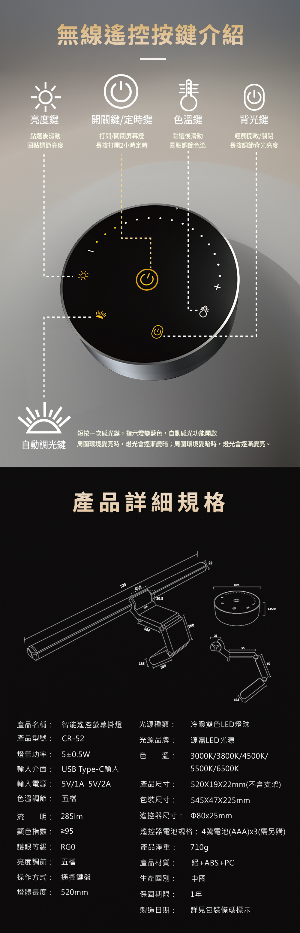 產品尺寸:520 x 22 x 19 mm(不含支架)