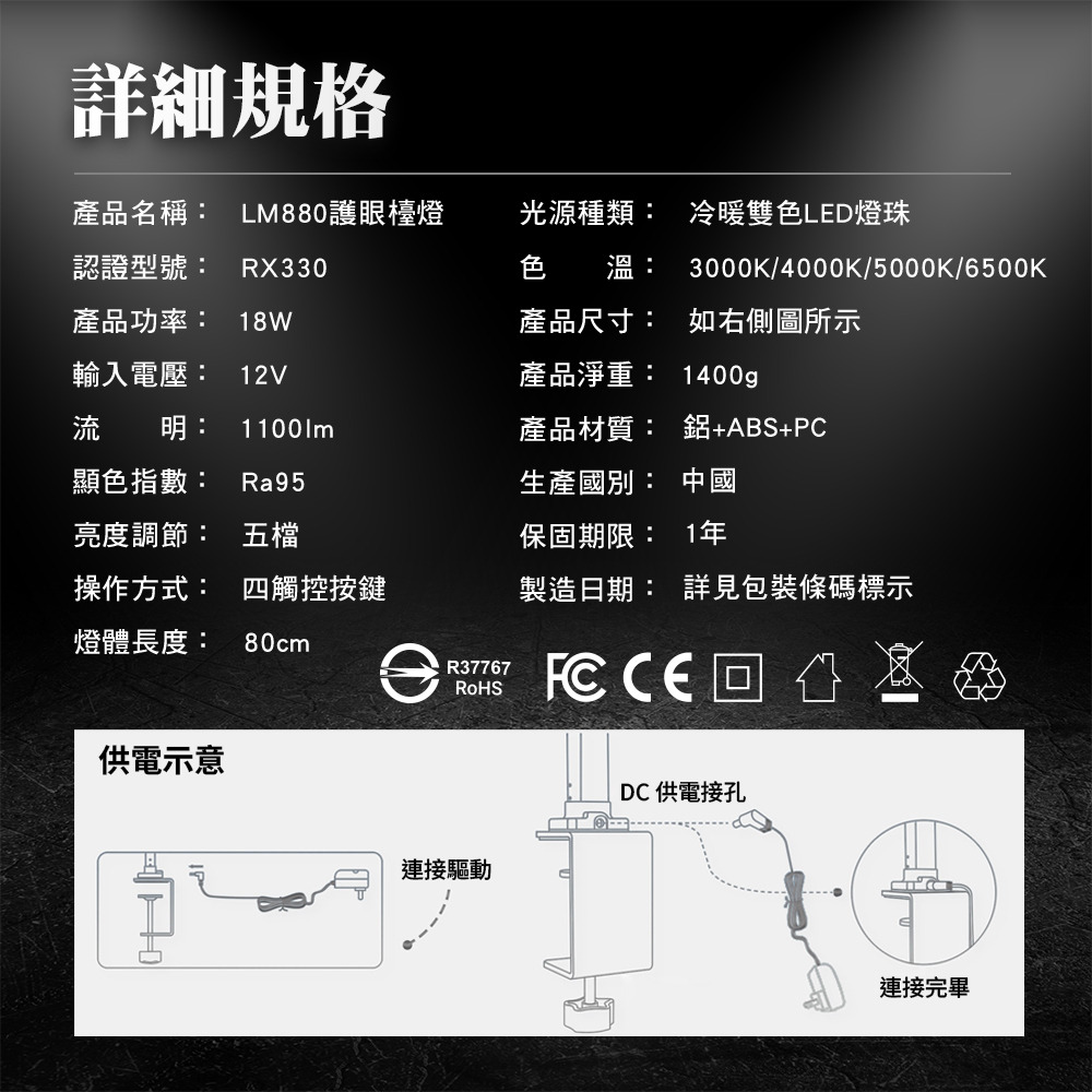 色溫:3000K/4000K/5000K/6500K