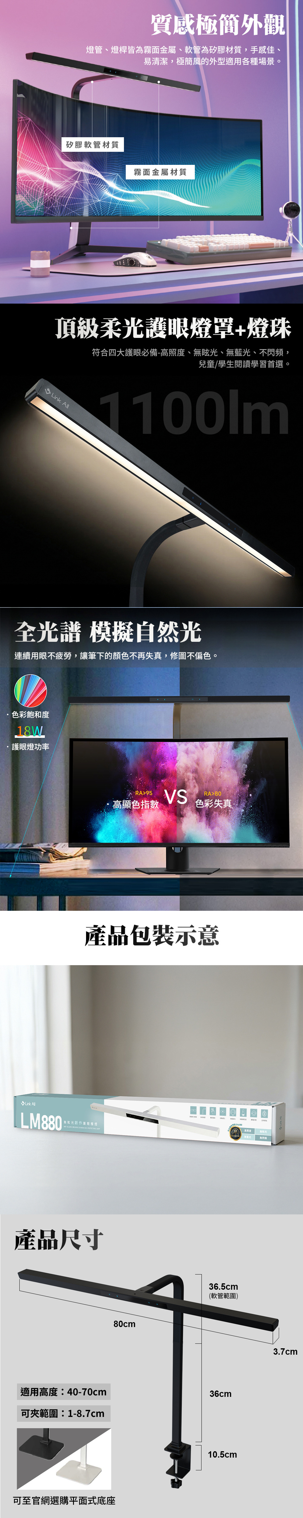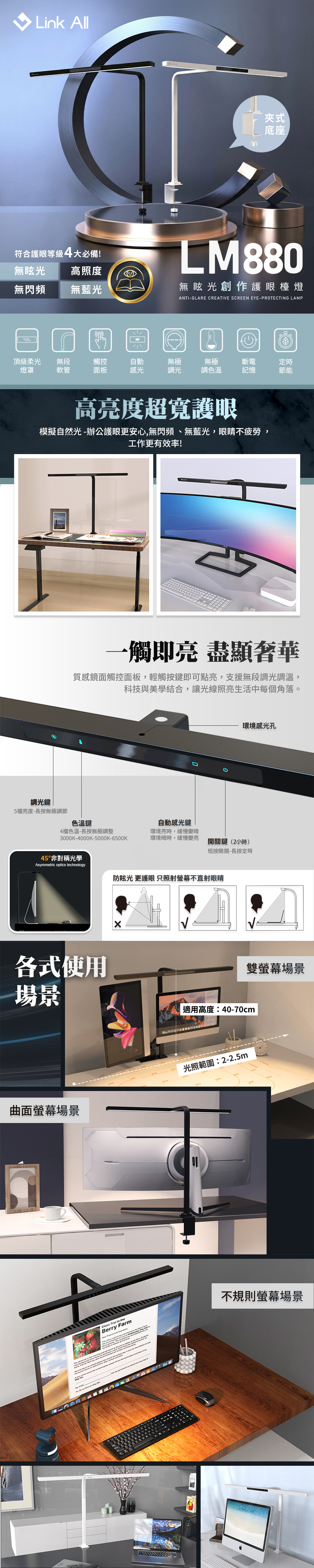1. 非對稱光源設計,零反光,不頻閃,不傷眼緩解使用疲勞。