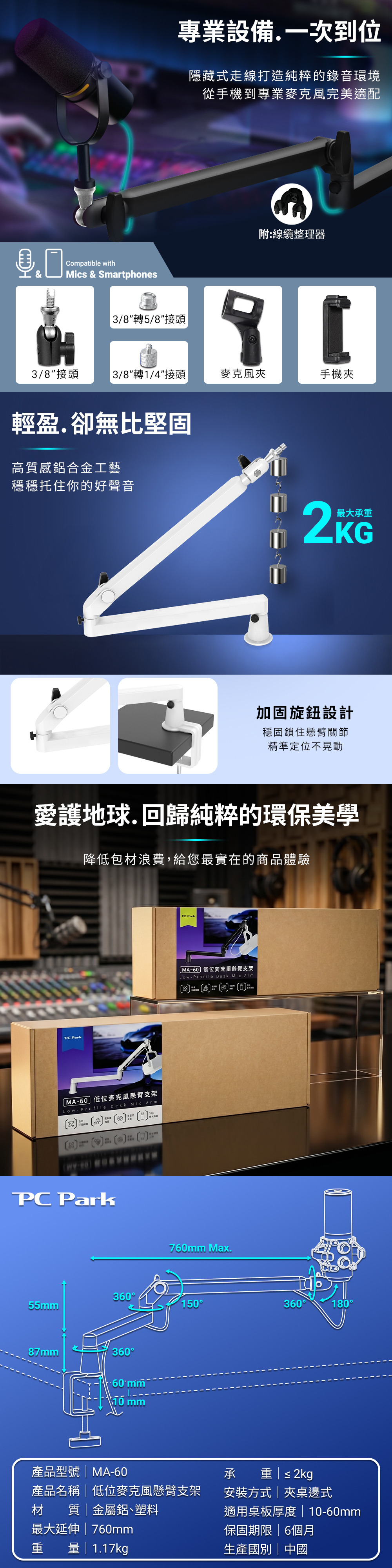 承重:≤ 2kg