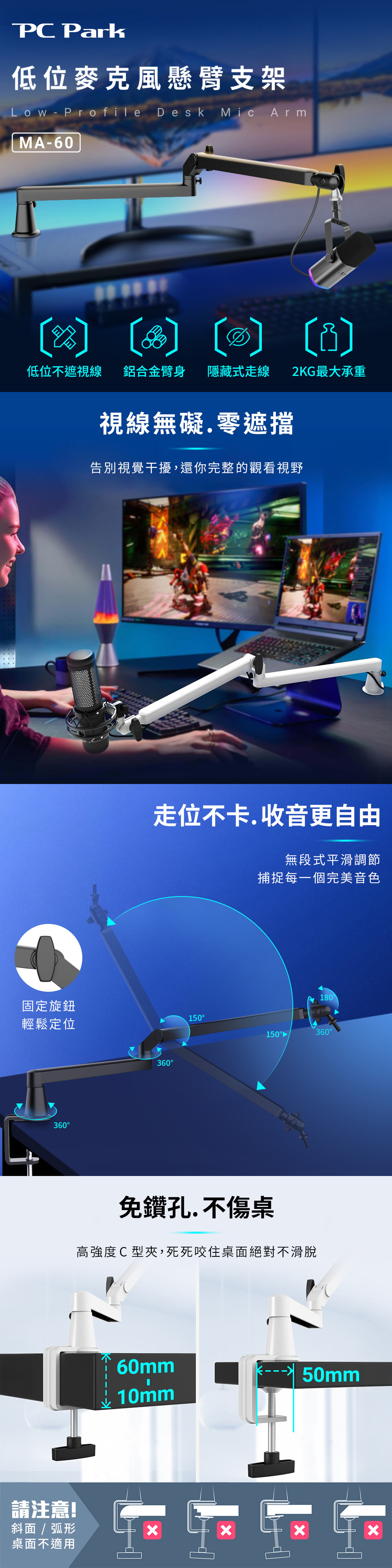 2.360°全向旋轉,多角度自由調節