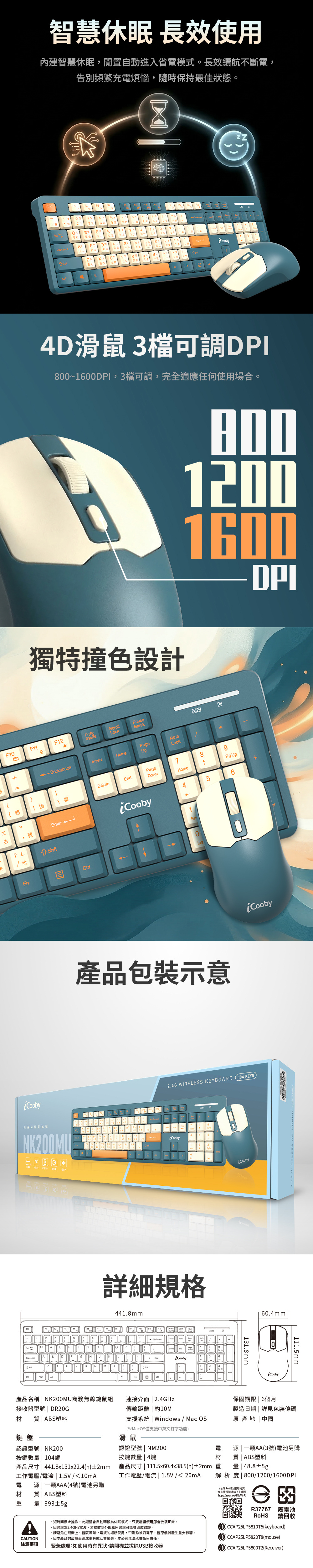 NCC號碼:CCAP25LP5810T5(鍵盤)、CCAAP25LP5820T8(滑鼠)、CCAAP25LP5800T2(接收器)